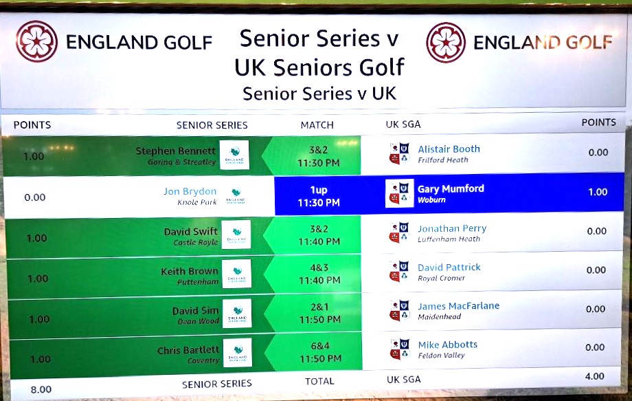 Feedback was very good with those playing particularly as it gives an excellent chance for others to represent the UKSGA.Special thanks to Alastair Booth who, despite wearing both hats, Captained the side in excellent fashion.